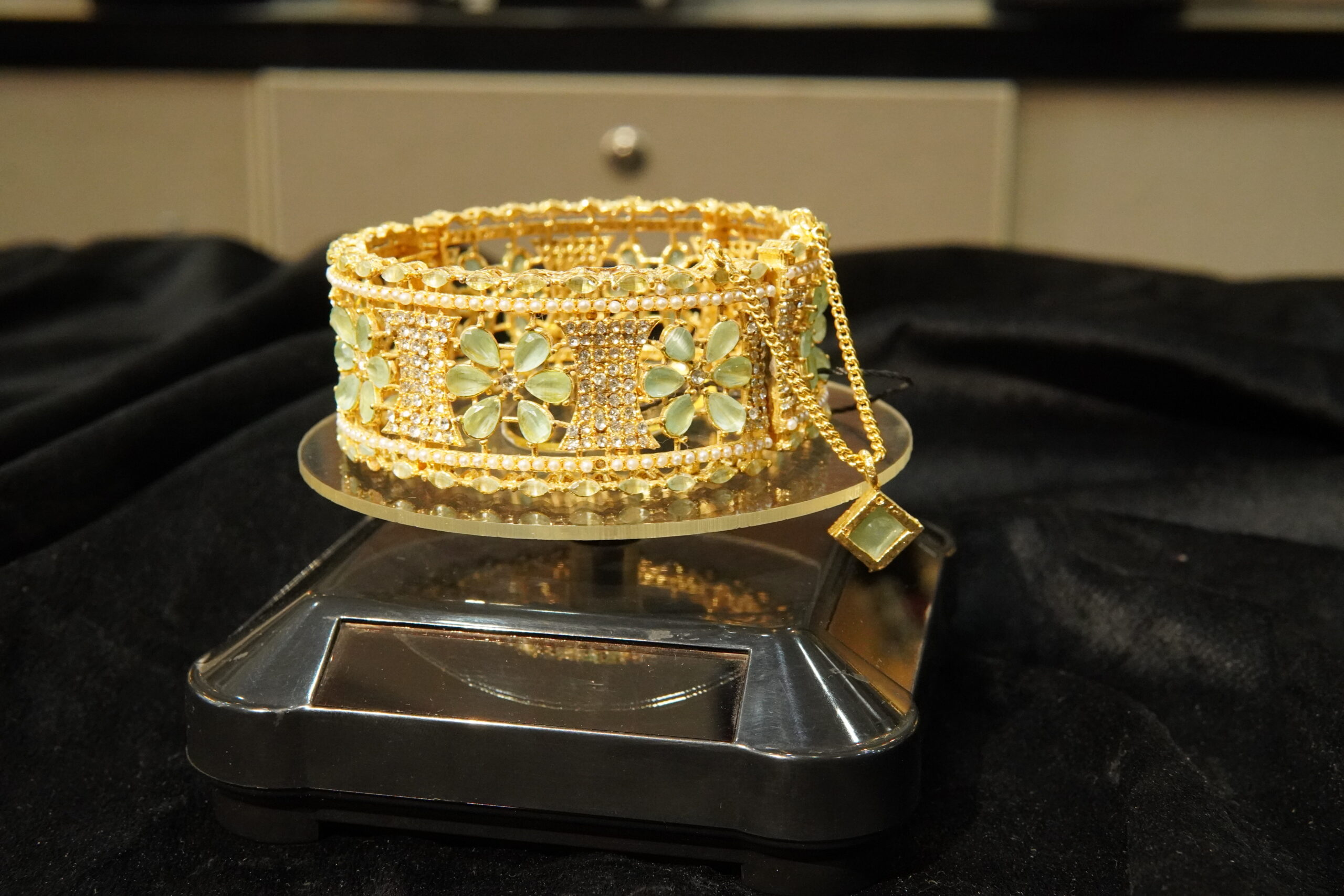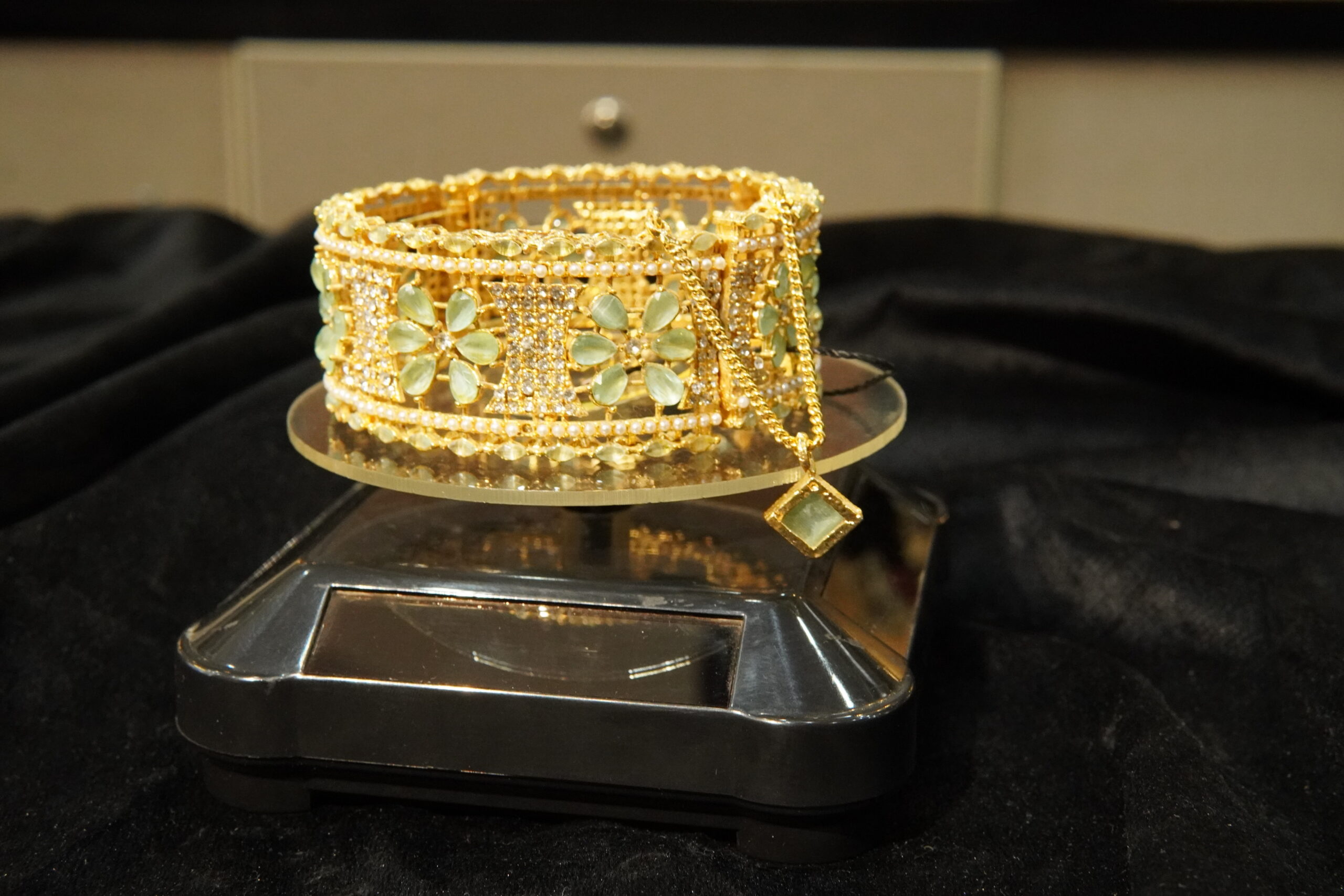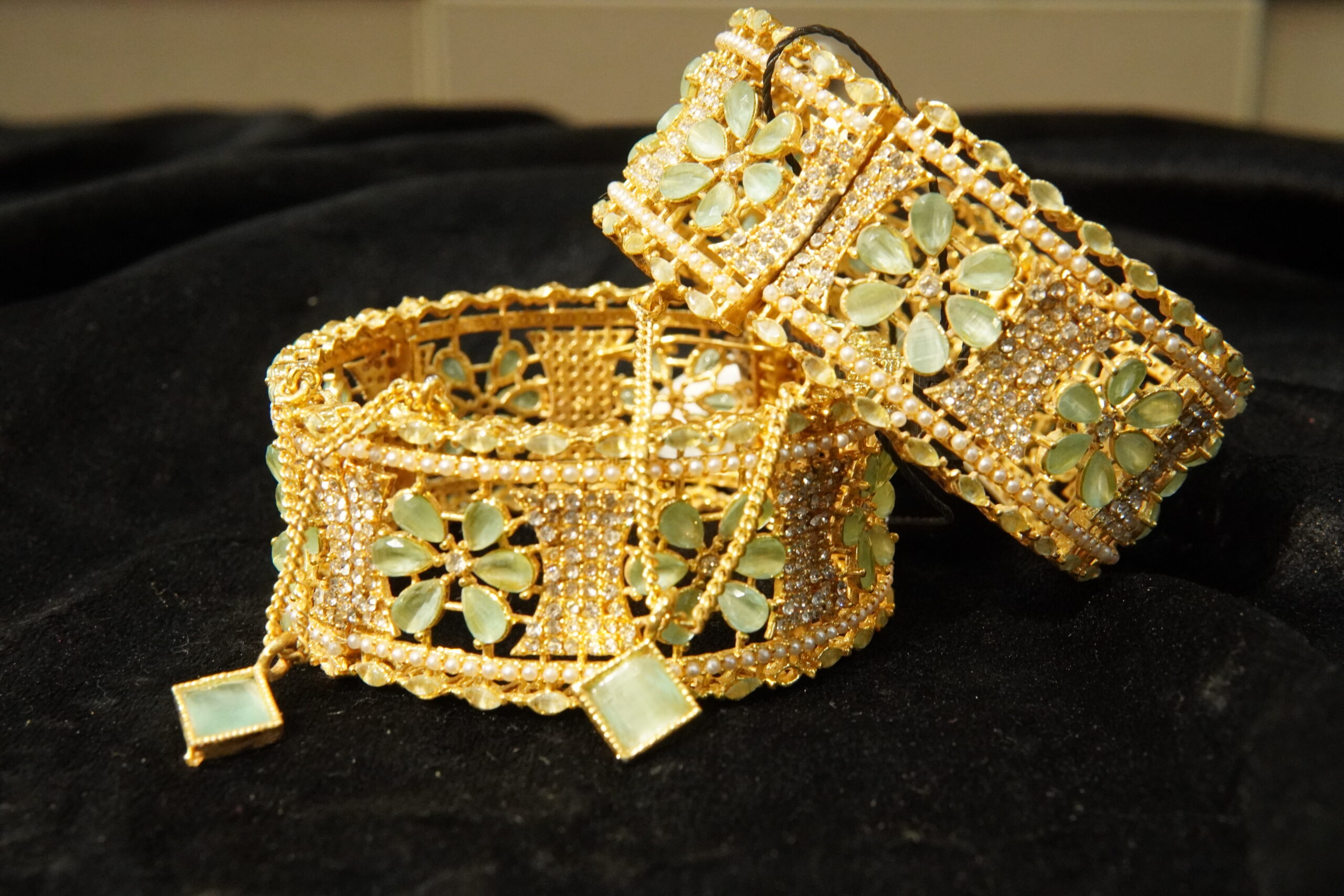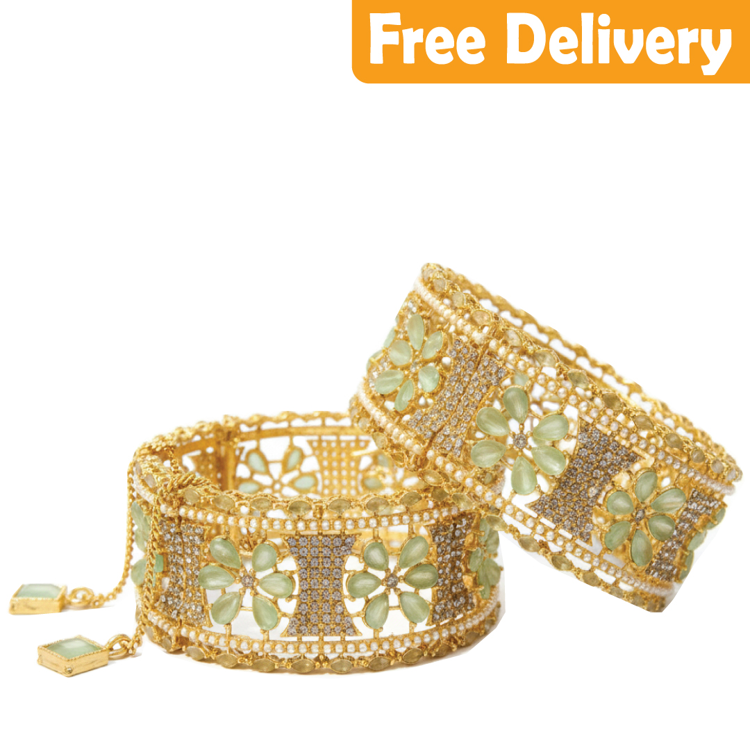 AMERICAN DIAMOND ZIRCON WITH AQUA MINT STON ON THE BASE OF GOLD(SINGLE)