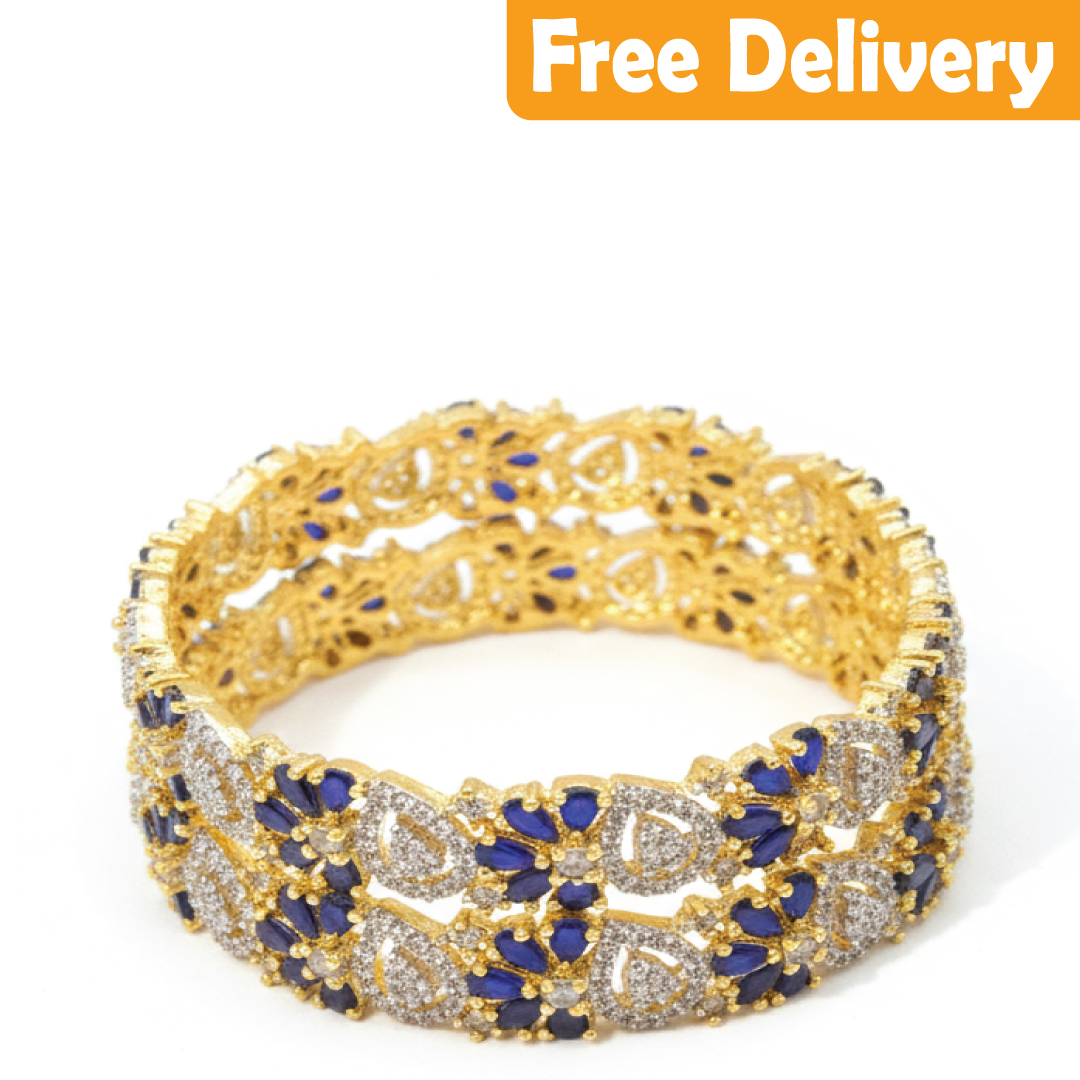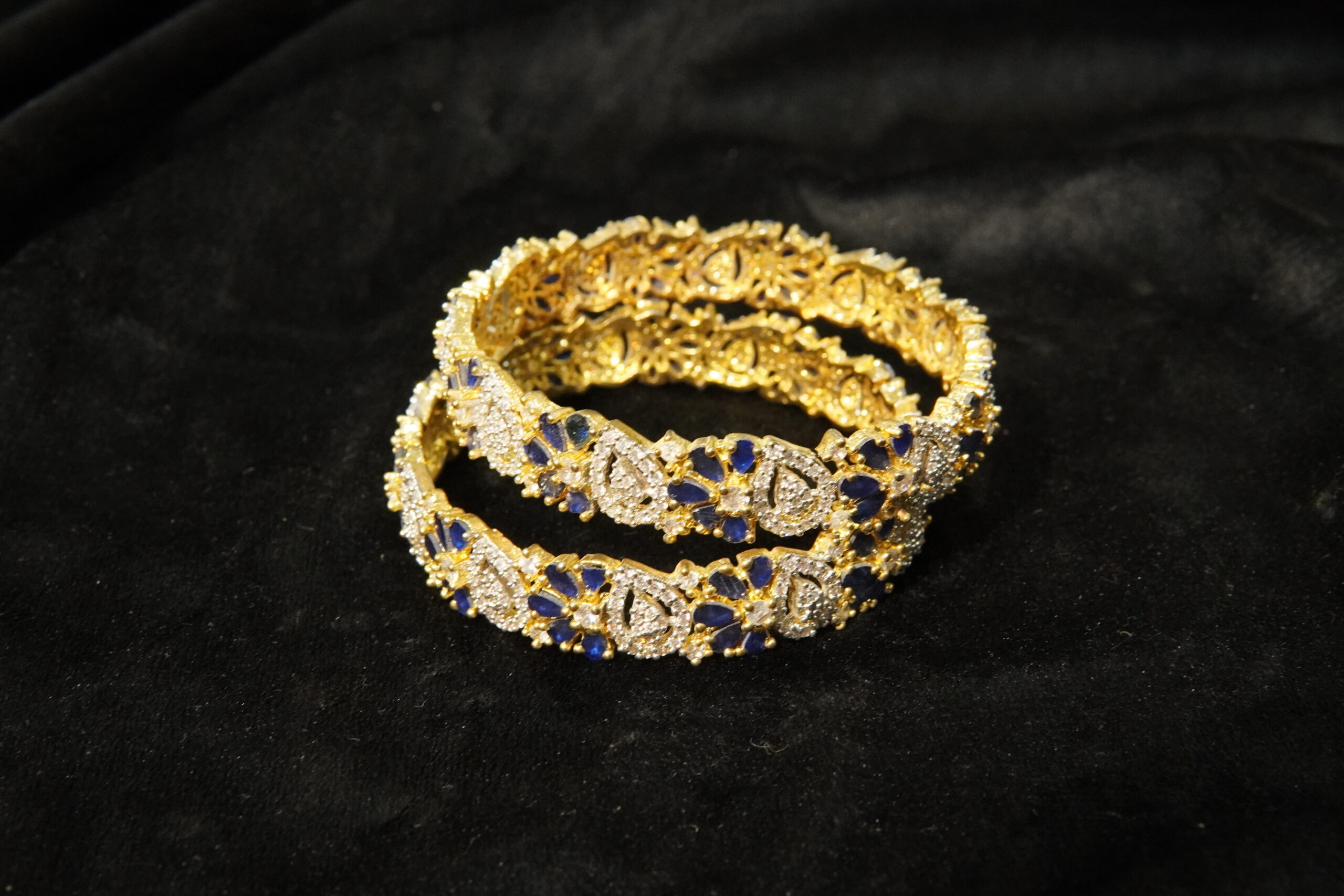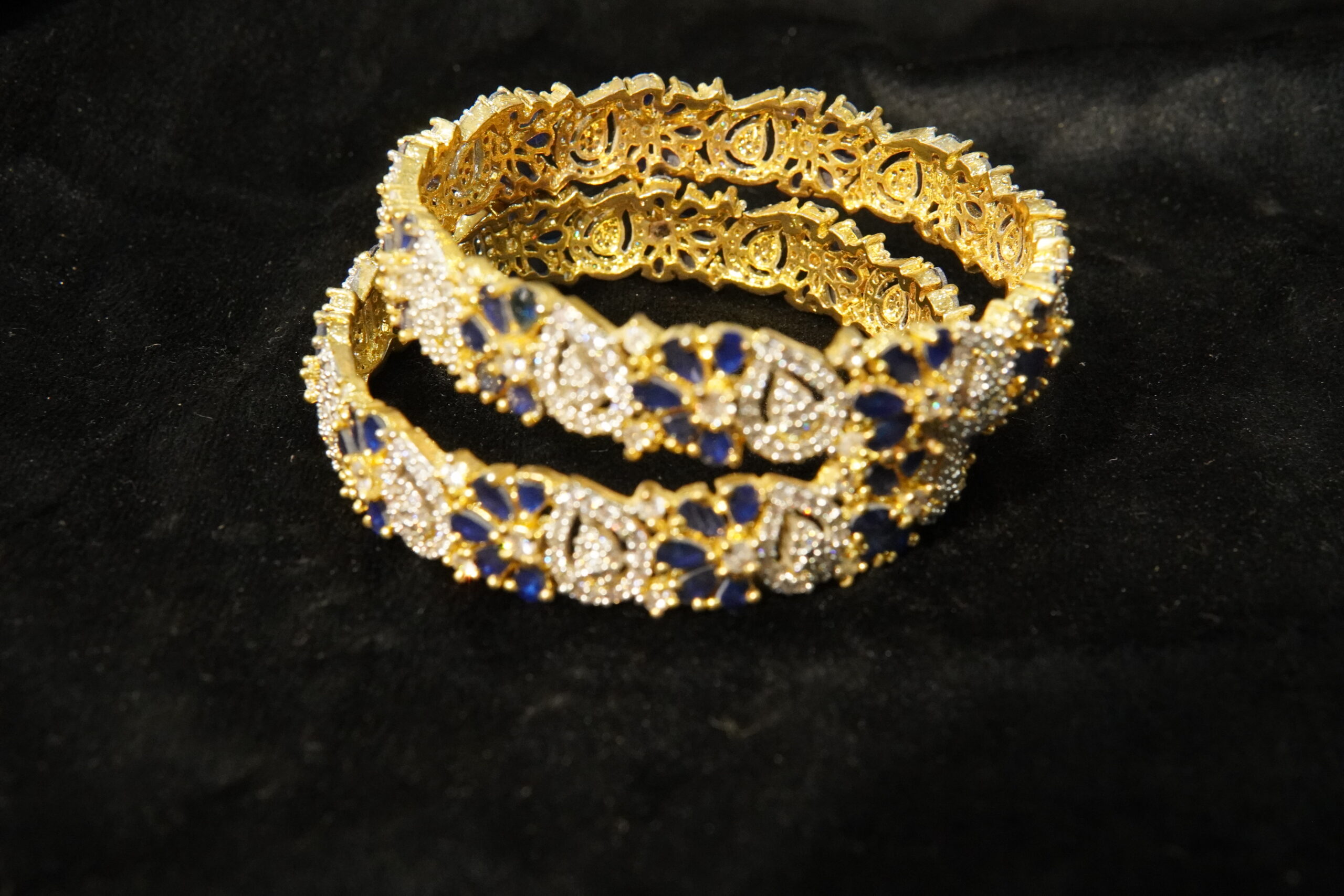 AMERICAN DIAMOND ZIRCON BANGLES WITH SLIVER AND GOLD